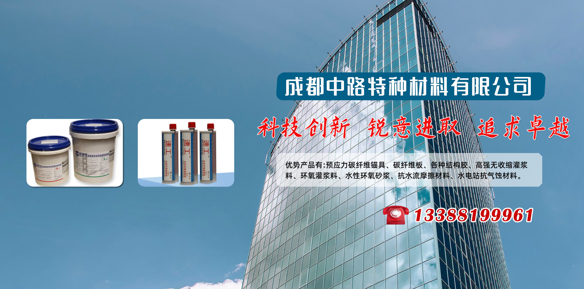 成都中路特種材料有限公司借助清華大學高分子材料學科、晨光化工研究院、西南交通大學、四川交通職業(yè)技術(shù)學院科研技術(shù)平臺成為一家集新材料研發(fā)、銷售、技術(shù)服務(wù)和施工于一體的專業(yè)服務(wù)公司,優(yōu)勢產(chǎn)品有:預(yù)應(yīng)力碳纖維錨具、碳纖維板、各種結(jié)構(gòu)膠、高強無收縮灌漿料、環(huán)氧灌漿料、水性環(huán)氧砂漿、抗水流摩擦材料、水電站抗氣蝕材料和研發(fā)各種特殊用途膠黏劑產(chǎn)品地處西南腹地成都,業(yè)務(wù)覆蓋四川各大中小城市、重慶、云南、昆明、新疆、西藏等區(qū)域。產(chǎn)品涵蓋各種加固施工材料、施工設(shè)備及施工配件,品牌有威士邦等aa進口品牌,同時批發(fā)銷售國產(chǎn)高、中、低端品牌,為客戶提供全面參考。